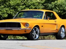 Check out the upgraded features of a 1967 Ford Mustang Coupe, including a 5.0L V-8 crate engine, Grabber Orange exterior, custom interior, Autosound Bluetooth/USB upgraded stereo, and more.